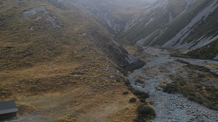 Looking up Macaulay Valley over Lower Tindill Stream